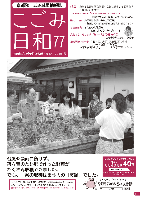 こごみ日和 87号(2021/春)「腐葉土づくり」や「街ふろしき体験」など立命館大学の様々なごみ減量の取組を紹介、日本一コミュニケーション豊かな会社「京都信用金庫」による地域の絆づくり、航空業界ならではの取組「機内食の現状」。年間約500件職人チームが手掛ける人形修理「福田匠庵」、思い熱く、実行力を発揮「久我の杜自治連合会地域ごみ減量推進会議」など、今号も情報満載です!