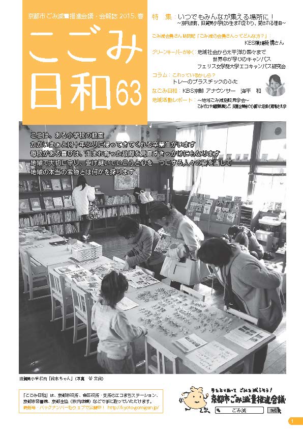 こごみ日和 71号(2017/春)「東山総合支援学校」での,落ち葉がつなぐ地域と生徒たちの交流,20周年を迎えた”ごみ減”のこれから,226回目を迎えるフリーマーケットの楽しみ方など,是非,ご覧ください。