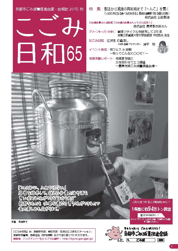 こごみ日和 65号(2015/秋)今号は,京都の歴史ある企業,大学を取材させていただきました。歴史はあるけど,環境の取組は最先端。ぜひ,中面をお読みください!