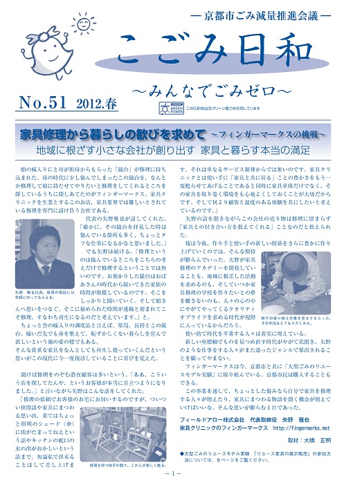 こごみ日和 72号(2017/夏)環境の専門家「浅利准教授」がプラごみ分別のコツを伝授,「パタゴニア京都」のビジネスとエコロジーの両立,「早川刃物店」の修理から生まれる物語など,是非,ご覧ください。