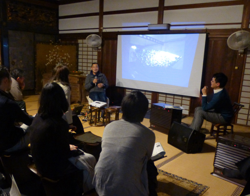 今回の上映会には、自らも「ごみ」に新たな命を吹き込み、ユニークな発想で作品を創り続けるアートユニット・淀川テクニックの柴田英昭さんがゲストとして招かれました。映画上映後には、ヴィック・ムニーズの活動とも関連させながら、より「ごみ」と「アート」の世界を身近に感じられる楽しいお話を伺うことができました。柴田さんが「ごみ」でもの創りを始めたのは、十三の淀川河川敷。淀川という、ちょっと不思議な場所で、友人の松永和也さんと共に、夢中になってものを創っていたといいます。2003年には、二人でアートユニット・淀川テクニックを結成。「不要」で「やっかいなもの」として扱われる河川敷の漂流物に、新たな価値を見出す淀川テクニックの創作スタイルはこの頃から変わっていません。大阪湾の河口に流れ着いた「ごみ」で何か作品を創ってくれないか、と大阪市港湾局から依頼があり、金属パイプやタイヤなどのごみをうまく組み合わせ、巨大な魚(チヌ)を創り上げた経験も。その後も、国内外の土地で出会った「ごみ」たちに、新たな命を吹き込んでいます。
