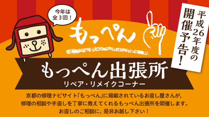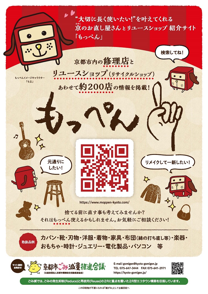 もっぺん:修理のお店、リユースショップも掲載店舗募集!!あたらしい「京のお直し屋さんとリユースショップ情報サイト『もっぺん』」に掲載させていただけるリユースショップを募集しています!