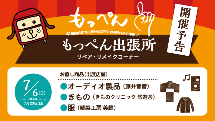 2014年7月6日(日)もっぺん出張所@市役所前フリーマを開催します!今回のもっぺん出張所では