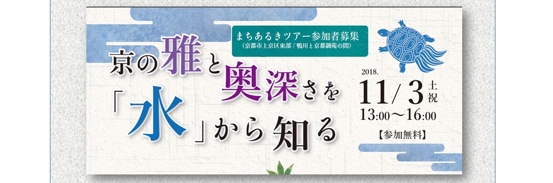 京の雅と奥深さを「水」から知る まちあるきツアー参加者募集 どなたでもご参加いただけます。11月3日(祝・土)13時から 参加費無料たくさんのお申込みありがとうございます。定員満了のため、受付終了しました。