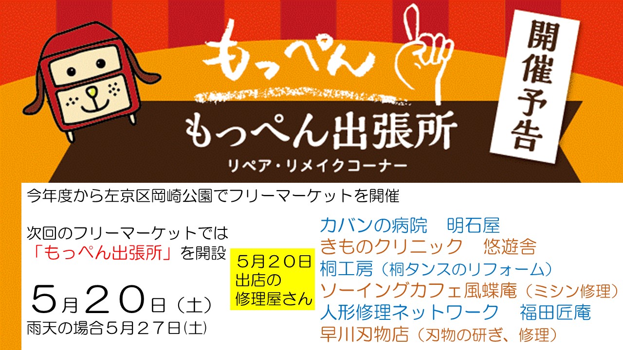 5月20日(土)もっぺん出張所29年度のフリーマーケットは,岡崎公園で開催します!