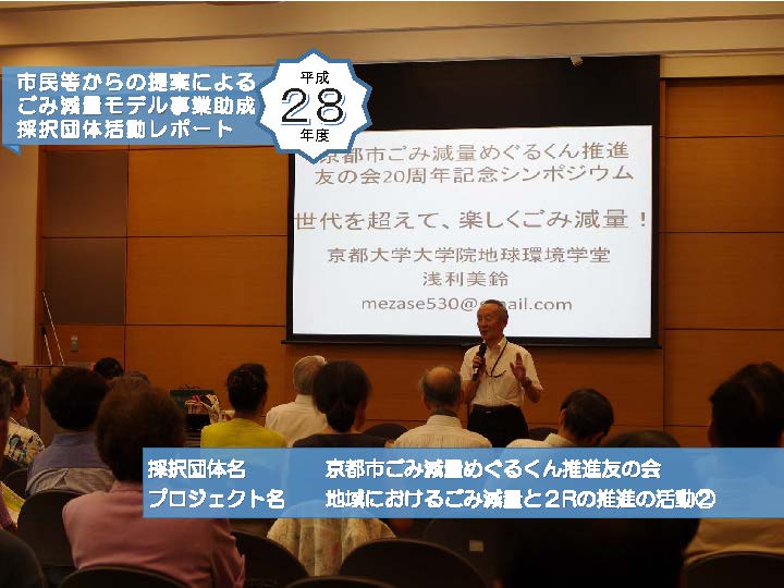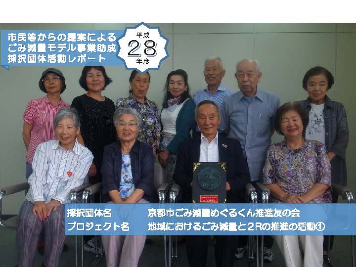 平成28年度:「京都市ごみ減量めぐるくん推進友の会」:その2京都市ごみ減量めぐるくん推進友の会の取組レポート2回目。 世代を超えた取組への第一歩のレポート[平成28年7月30日取材]