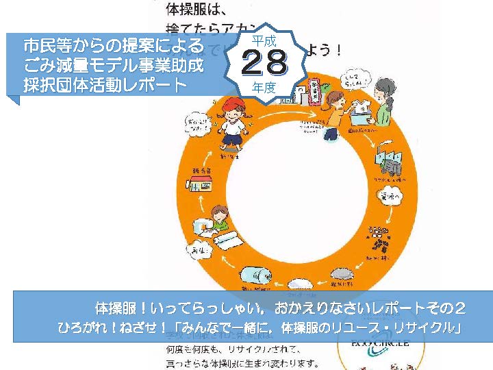 平成28年度:「体操服!いってらっしゃい,おかえりなさい実行委員会」:その1体操服!いってらっしゃい,おかえりなさい実行委員会「ひろがれ!ねざせ!『みんなで一緒に,体操服のリユース・リサイクル』」の活動レポートその2 [平成28年10月26日取材]