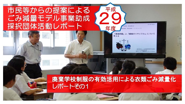 平成29年度:「廃棄学校制服の有効活用による衣料ごみ減量化」:レポートその1&img( /uploads/works/183/seni01_1_01_.jpg , 画像の説明文 , 600px , 340px ); RIGHT:[一般社団...