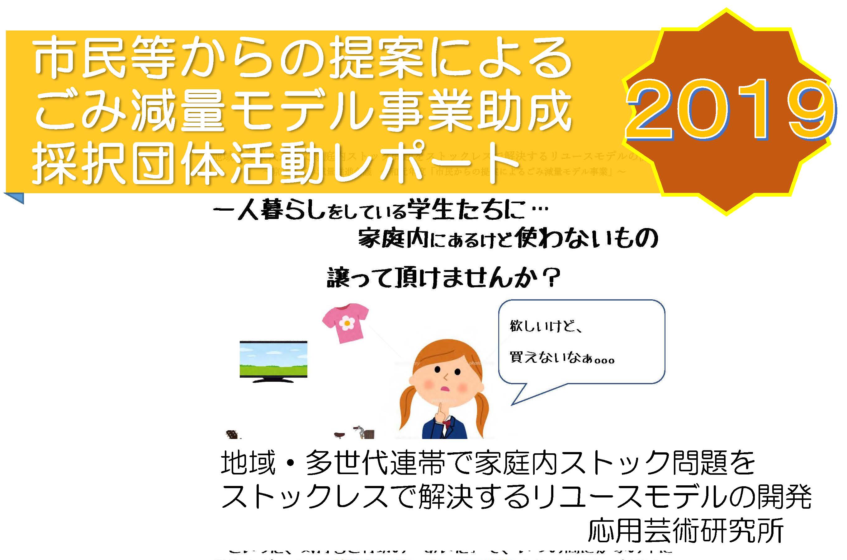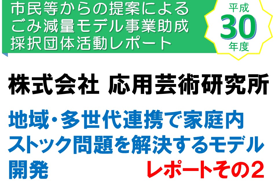 平成30年度:地域・多世代連携で家庭内ストック問題を解決するモデル開発 その1&img( /uploads/works/210/ouyougeijutsu_report1_title.jpg , 画像の説明文 , 400px , 270px ); **...