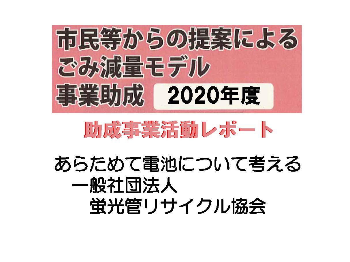 令和2年度:あらためて電池について考えるRIGHT:[蛍光管リサイクル協会 令和2年11月20日取材]  蛍光管リサイクル協会は、これまで事業所を対象...
