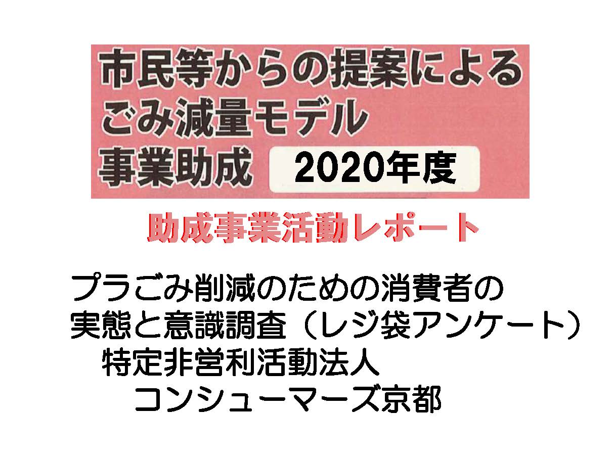 令和2年度:プラごみ削減のための消費者の意識調査および啓発活動RIGHT:[NPO法人コンシューマーズ京都 令和3年1月15日取材]  NPO法人コンシューマーズ京都は、昨年...