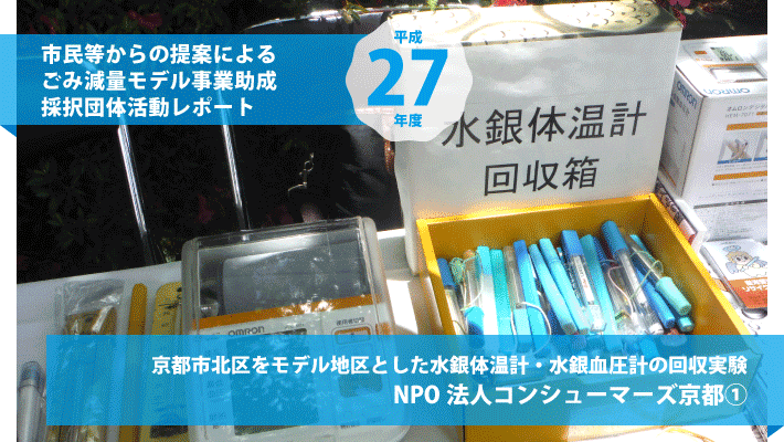 平成27年度:NPO法人 コンシューマーズ京都:その1京都市北区をモデル地区とした水銀体温計・水銀血圧計の回収実験 [平成27年6月6日取材]